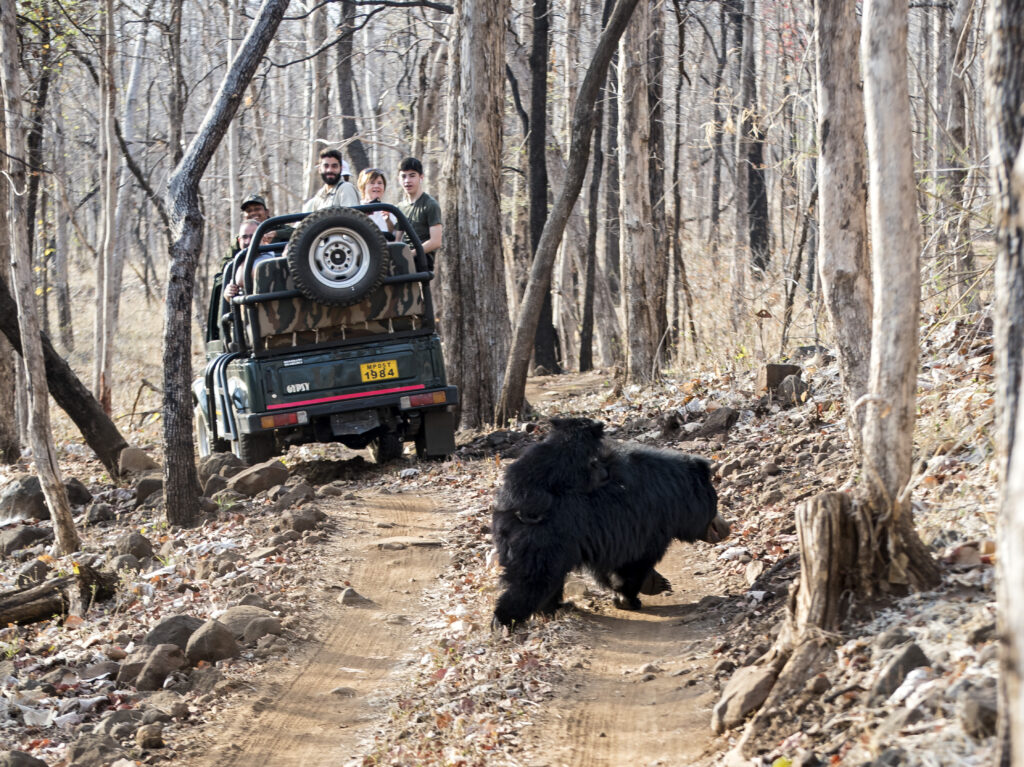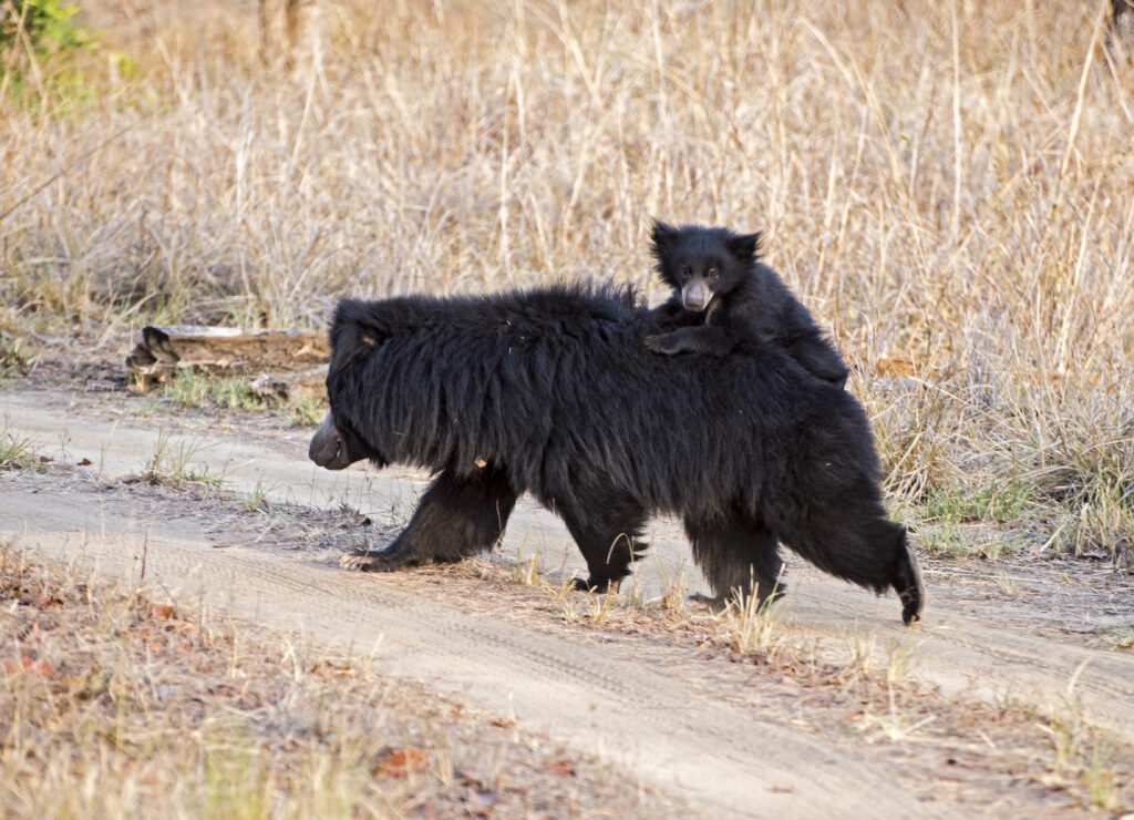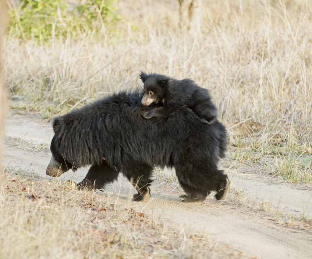 “Only a skilled tiger can bring a gaur down,” said Neha, “ while sloth bears and tigers are an equal match.” The nails of a sloth bear are lethal and can even tear apart a human being. The black furry balls are, however, lovable from a distance and playful, and on a previous visit we had spotted a mama bear with a baby piggy-backing her.