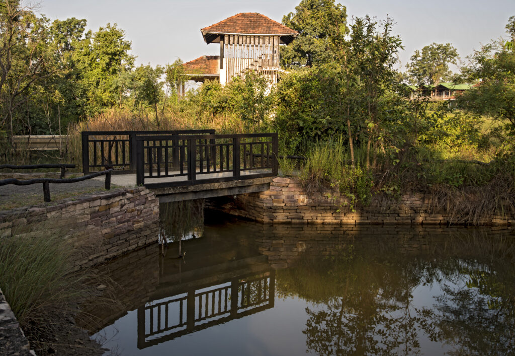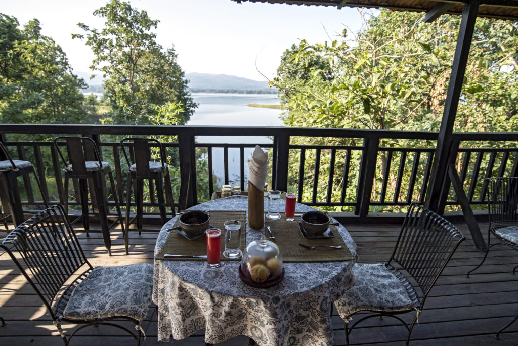 As dusk mantled the forest giving it an almost eerie beauty, pangs of hunger drew us back to our resort, Pugdundee Safaris’ Denwa Backwater Escape. This lodge spins on an axis of conservation and protection of the forest yet provides comfort, organic cuisine and stunning views. Our glass-fronted suite done in safari lodge style had a patio facing the blue slash of the backwaters of the Denwa river in the distance… We spent hours on the patio where the air was textured with bird song and the wilderness beyond seemed to whisper to itself. The eight cottages and two tree houses are built on 10 acres of wilderness, only partially manicured with pebbled paths lit with paraffin lamps at dusk. Indeed, despite its commitment to luxury, the Denwa Backwater Escape has a light footprint and the only sign of its existence is an array of tiled roofs snuggling amidst the forest cover.