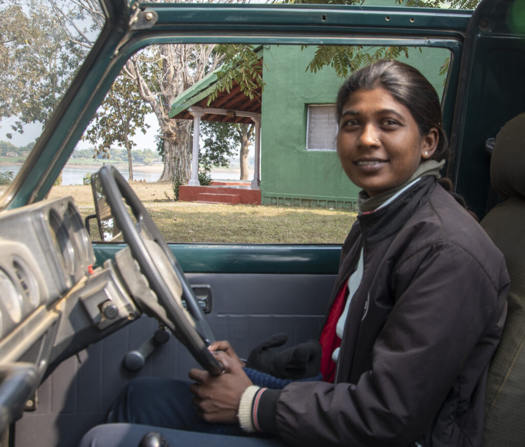 As part of the Safe Tourism Destination for Women project, launched by the Madhya Pradesh Government (Madhya Pradesh is a state in central India with well-managed wildlife parks), women safari drivers and guides now take tourists around wildlife infested forests, armed only with supreme confidence. The forest guide and the driver belong to a tribal community whose lives were intertwined with the forest which they now help to protect.